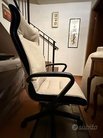 Poltrona Qualis di Emilio Ambasz per Tecno, anni '90. Movimento oscillante, altezza regolabile, base girevole, con rotelle e braccioli . Rivestimento similpelle panna. Perfette condizioni. Ritiro a mano a Canale Cn a carico dell’acquirente. Privo di imballo.