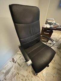 Vendo poltrona in pelle nera, modello “Vela” in buone condizioni, girevole e regolabile in altezza. Comodissima ed elegante, vendo unicamente per rinnovo arredamento dello studio.