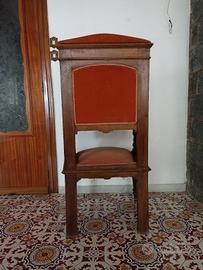Grande poltrona in legno di noce, braccioli a forma di grifoni / draghi alati scolpiti a tutto tondo, seduta e schienale in velluto. Misure: H cm 120, L cm 69, profondità cm 58