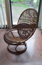 Poltrona mod. Tre Cerchi, prodotta da Vittorio Bonacina & C. Realizzata in canna d'India e malacca. Disegno del 1959, esecuzione fine anni 60 (cm 100x76x80). Lieve difetto, vedi ultima foto. Consegna solo a mano. Disponibile ad aprile 2026.