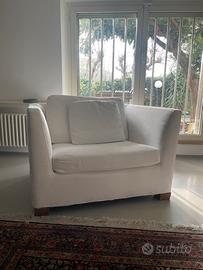 Comodissima poltrona Ikea completa di cuscini, in cotone bianco, sfoderabile e lavabile ad acqua, piedini in legno, struttura solida. Dimensioni 100x80 h 70 Solo ritiro