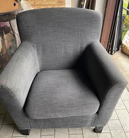 Vendo Poltrona IKEA modello Ekenas in robusto tessuto grigio scuro con piedini neri.