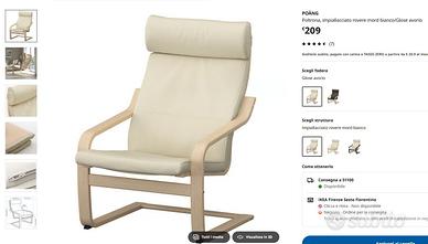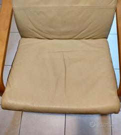 Vendo poltrona Ikea modello POANG, in pelle di colore beige, in ottime condizioni. Struttura in legno curvato, flessibile e resistente, che offre un piacevole molleggio e sostiene il collo.