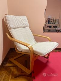 color legno chiaro in ottime condizioni con cuscino in condizioni buone (un po’ graffiato dal gatto) color panna