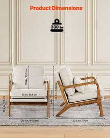 • Venditori Affidabili di Esperienza • Spediamo ovunque, anche in Contrassegno • Vendiamo solo articoli Nuovi di prima qualità • Contattaci per qualsiasi info necessaria Stile moderno di metà secolo: questa poltrona in stile moderno di metà secolo colpisce per il suo aspetto classico ed elegante e il design pratico, integrandosi in una varietà di stili d'interni. Che si tratti del soggiorno, della camera da letto o dell'ufficio, si integra in qualsiasi spazio Design ergonomico: questa sedia in legno presenta uno schienale con un'inclinazione di 105° e un cuscino più ampio che si adatta meglio alla curvatura naturale del corpo e sostiene la parte bassa della schiena. Il design consente di spostare il peso all'indietro Materiali di alta qualità: la seduta e lo schienale di questa moderna poltrona in stile metà secolo sono imbottiti in schiuma ad alta densità e alta resilienza per garantire morbidezza e resistenza. Il morbido rivestimento in lino è delicato sulla pelle e traspirante Robusta e durevole: questa poltrona è caratterizzata da una robusta struttura in legno di caucciù con una finitura liscia e senza sbavature. Le gambe angolate offrono un supporto e una stabilità eccellenti, supportando fino a 150 kg Facile da montare e da pulire: questa sedia in legno include tutti i componenti necessari e istruzioni di montaggio dettagliate per un facile montaggio. Il rivestimento in lino, sfoderabile e lavabile, facilita la pulizia e la manutenzione della sedia nel tempo