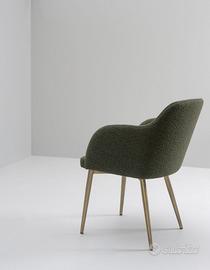 Poltroncina modello ROMEO con struttura a 4 gambe in metallo e scocca imbottita e rivestita con seduta ad abbraccio.
