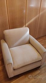 vendo per inutilizzo poltrona imbottita in tessuto beige. i cuscini sono sfoderabili e lavabili. vendo a 40€. normali segni di usura.