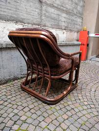 Poltrona di design vintage anni 60, con struttura in Bamboo e inserti in ottone.