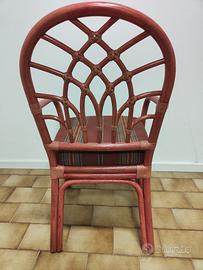 Vendesi, ad € 35,00, come da foto, poltrona in giungo color salmone con cuscino imbottito. Misure seduta h. 50 cm circa, dimensione ant. 47 e post. 45 cm, schienale h. 95.