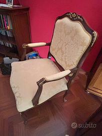 Poltrona per salone in ottimo stato, molto comoda. Il tessuto è damascato Misure: altezza 103 larghezza 73 lunghezza 60 Spedizione da concordare