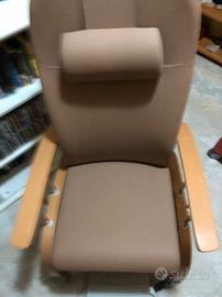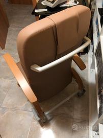 Poltrona professionale con rotelle in legno nuovissima per persone anziane o disabili si sposta molto facilmente.mai utilizzata.nuova di negozio.acquistata a Calcinelli.fornisco libretto istruzioni e fattura d'acquisto.