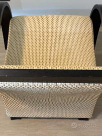 Poltrona dal design elegante in legno e rattan naturale, perfetta per portare calore e stile in qualsiasi ambiente. Si distingue per le linee curve degli braccioli, che le conferiscono un tocco distintivo e molto confortevole. L'ampio sedile e lo schienale imbottito offrono un grande comfort, ideale per il soggiorno, la camera da letto o un angolo lettura. Dimensioni: 80cm x 75cm x 80cm. Stato: 8/10 (il legno presenta alcuni piccoli difetti, visibili nelle immagini)