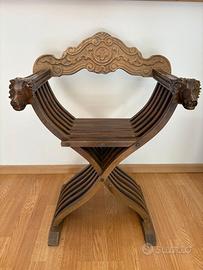 Vendo poltrona in legno massello dal design molto caratteristico, con braccioli decorati da dettagli intagliati raffiguranti leoni. Elemento d’arredo unico, ideale per chi ama lo stile classico, vintage o rustico, perfetto come pezzo distintivo in soggiorno, studio o taverna. Struttura solida e resistente, in buone condizioni generali con normali segni di utilizzo che ne valorizzano il carattere. Caratteristiche: Struttura in legno massello Braccioli con decorazioni a forma di leoni Stile classico / vintage Pezzo unico e decorativo Robusta e durevole Il trasporto è a carico dell'acquirente.