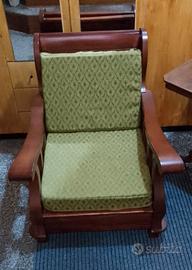 Poltrona in legno massello reimbottita e rivestita