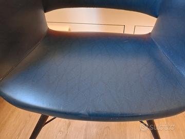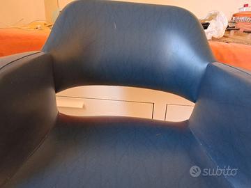 La poltrona è in vera pelle blu, con piedini originali. Presenta due piccoli segni, uno dei quali sullo schienale, da sistemare. Ritirabile a Bologna o Modena, non può essere spedito. Prezzo trattabile, si apprezzano offerte.