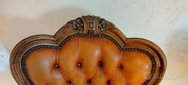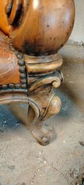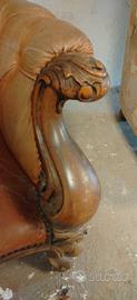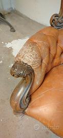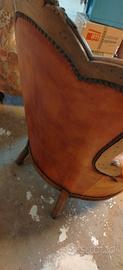 vendo poltrona vintage in pelle con fregi in legno segni di usura come da foto
