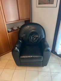 Poltrona in vera pelle nera. marca: Divani&Divani. Oggetto molto usato con evidenti usure su entrambi i braccioli. fai un’offerta!