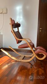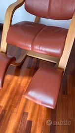 Sedia ergonomica Stokke Gravity Balans originale d'epoca, disegnata da Peter Opsvik e prodotta dall'azienda norvegese Varier negli anni 80. Struttura in compensato e sedute in vera pelle. tutto rimasto originale. È in ottime condizioni vintage.
