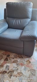 Vendo bellissima poltrona in pelle. Usura pressoché nulla, è veramente come nuova! in pelle. colore grigio. Misure : larghezza cm 100, altezza cm 102, altezza bracciolo cm 58