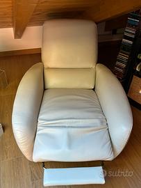 Poltrona in pelle bianca girevole con meccanismo recliner in ottime condizioni.