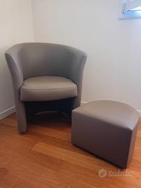 poltrona in pelle con poggia piedi