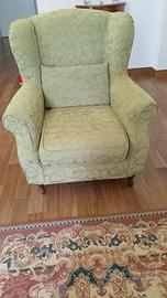 Poltrona sfoderabile con doppio tessuto (verde e beige).