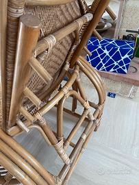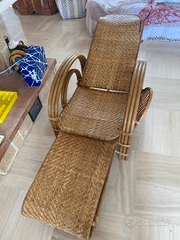 Vendo per inutilizzo! Poltrona in rattan con posizione sedia, poggia piedi estraibile o lettino prendiaole o rilassante! Sul lato ha anche un porta oggetti o porta riviste!