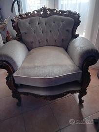 Ribasso/ svendita : robusta poltrona in stile. La seduta abbisogna di nuova imbottitura. Immaginandola in un cubo, questo avrebbe una dimensione di circa 90 cm per ogni lato. Svendo per problemi di spazio. Da ritirare a casa mia.