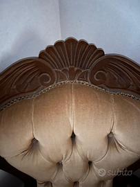 Poltrona imbottita in velluto color senape. Ottime condizioni Dimensioni: h 105 cm, larghezza 66 cm