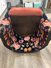 Il nostro Showroom propone a prezzo promo per rinnovo expo poltrona in velluto stampa floreale su base col. nero con seduta a contrasto col. rosa antico, creato nel nostro Laboratorio grazie alle preziose mani dei nostri artigiani tappezzieri.