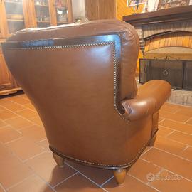 Vendita singola poltrona in vera pelle con struttura in vero legno massello, ottima da posizionare vicino al caminetto, per sorseggiare un buon bicchiere di vino , trasporto a carico acquirente non spedisco, si può vedere e provare a Forlì dimensioni circa 1 metro per 1 metro