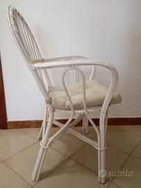 Vendo per inutilizzo sedia - poltrona in vimini bianco in ottime condizioni con cuscino. Euro 50,00