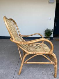 Poltrona in vimini utilizzata poco e sempre all’interno. Vendo per inutilizzo. Nel prezzo sono compresi anche i cuscini. Ritiro a Bolzano, non spedisco.