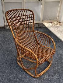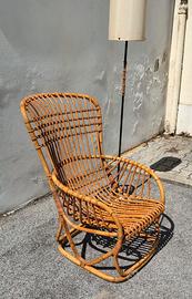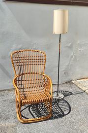 Poltrona in vimini e bambù, disegnata da Tito Agnoli per Bonacina, Italia, anni '50. Dimensioni: Larghezza 67 cm Altezza 100 cm Profondità 90 cm