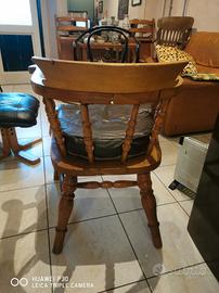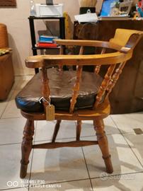 Poltrona inglese in legno chiaro di grande robustezza e fascino, completa di cuscino in pelle. Comodissima e in perfette condizioni