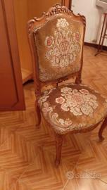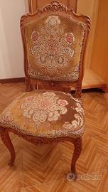 Vendo poltrona intagliata con imbottitura ricoperta da tessuto damascato. Poltrona in ottimo stato.