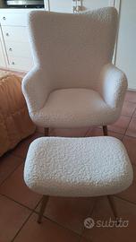 Poltrona e poggiapiedi in tessuto teddy color avorio modello HUNDESTED di Jysk Altezza cm 96 Altezza seduta cm 45 Larghezza massima cm 70 Solo poltrona € 80.00 Poltrona e poggiapiedi € 110