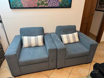 2 poltrone in tessuto azzurro acquistate ad Agosto 25 presso Mondo Convenienza. Vendo per trasloco e mancato utilizzo.