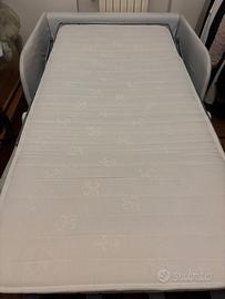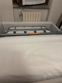 Ampia poltrona letto di tessuto bianco . Rete elettrosaldata completa di materasso in tessuto