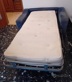 Poltrona letto tessuto grigio azzurro. Materasso cm 190x75. Poltrona larga 125, profonda 90. Non spedisco: ritiro a Bologna (Rastignano).