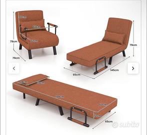 in 1 Poltrona Letto Singolo, Poltroncina Pieghevole con Schienale Regolabile in 6