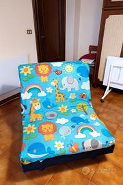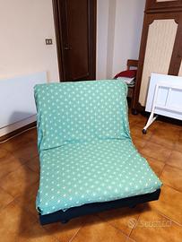 Vendo poltrona letto,con doghe, usata 5 volte. Viene fornita come nella prima immagine (senza copertura colorata) le immagini 3/4/5/6 sono solo degli esempi di possibili colorazioni prodotte con AI .