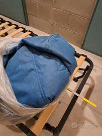 Poltrona letto ikea. L'immagine è per mostrare il modello ma quella disponibile ha una fodera azzurra e una fodera di ricambio rossa visibili in foto. Molto comoda per dormire. le misure chiusa senza materasso sono H 80 largh 80 prof 85. Aperta senza materasso 187.
