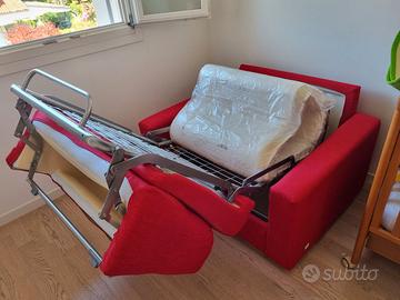 Vendo poltrona letto DOIMO ALAN colore rosso (codice colore FRIDA 72). Il prodotto è di alta qualità, è molto comodo sia come poltrona che come letto, e facile da convertire tra letto/poltrona. Il tessuto è lavabile e idrorepellente. Il materasso è stato usato pochissimo ed è ancora avvolto nel suo involucro di cellophane, quindi è protetto dalla polvere.