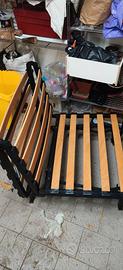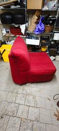 Poltrona che si trasforma in letto, rossa con misure di larghezza 82/86, profondità 97 e altezza 90. Facile da aprire e richiudere
