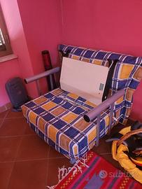 poltrona letto singolo in metallo a colori vivaci usata forse due volte carico e trasporto a cura di chi la compra