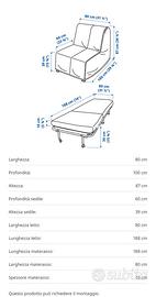 Vendo poltrona letto ikea modello lycksele murbo, comprende materasso murbo e fodera con fantasia. Perfette condizioni, per ulteriori foto chiedere.
