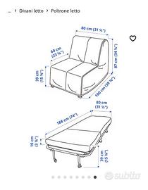 Vendo, per motivi di spazio, poltrona-letto usata pochissimo (solo 3 volte), con rivestimento trapuntato e leggermente imbottito color verde petrolio. Togliendo la fodera diventa con facilità un letto singolo con doghe in legno e materasso ben compatto, alto 10 cm. Ideale per chi cerca una comoda poltrona che diventa un letto all'occorrenza.