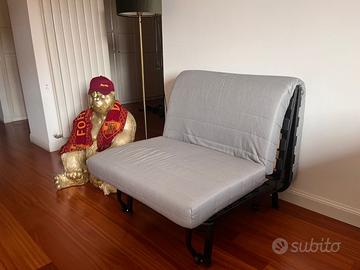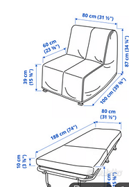 poltrona dell'ikea, come nuova, comodissima, non sembra di dormire su una poltrona reclinabile per quanto è comoda. il rivestimento è bianco proprio come quello della foto del sito Ikea, che ora non si vede perchè quando ho fatto le foto mi son dimenticata di fare anche quella con il rivestimento bianco, ma c'è ed è incluso nel prezzo ed è parte della poltrona.