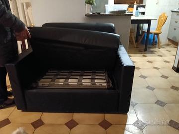 Poltrona letto in pelle nera da una piazza e mezza (si veda misure), in ottimo stato, quasi mai usata. Ritiro a cura acquirente al mio domicilio.